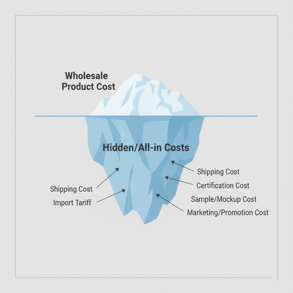 The wholesale price is only a fraction of the total investment. A complete cost breakdown is necessary to accurately calculate your net profit margin.