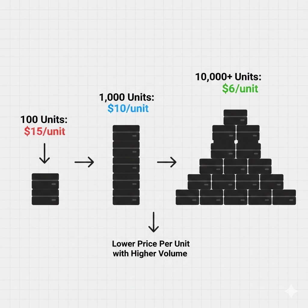 • Important Note: Do not negotiate a low price for a massive order (e.g., 10,000 units) and then only place a small order (e.g., 1,000 units) expecting to keep that price. This damages trust and business relationships.